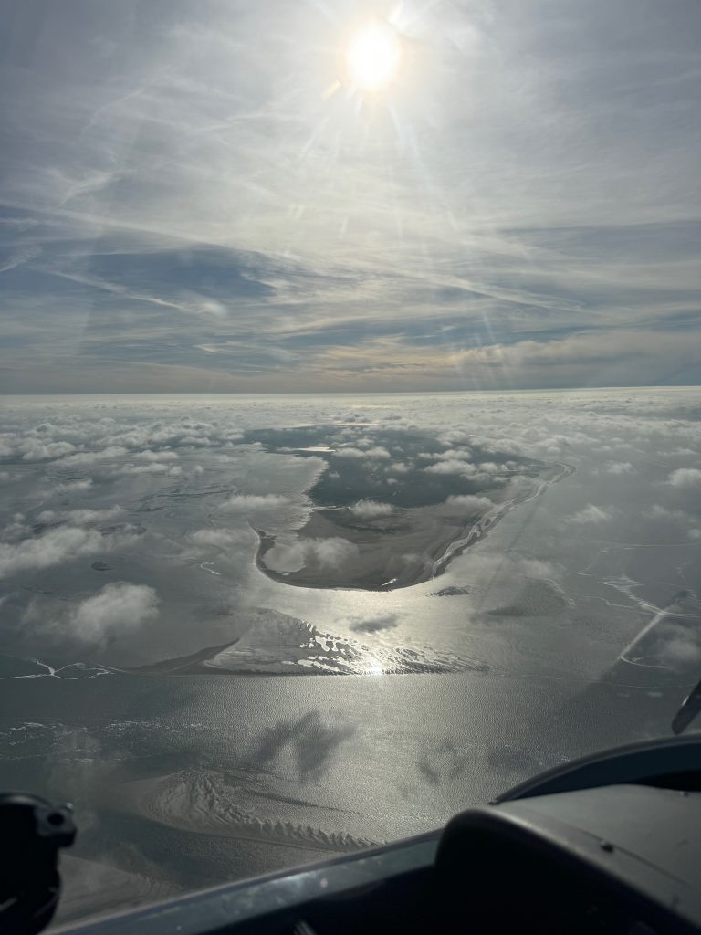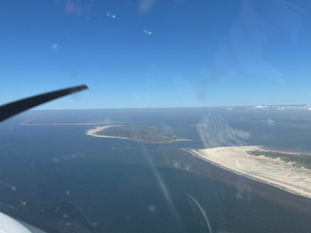 Baltrum in der Mitte – Rechts Norderney und im Hintergrund Langeoog